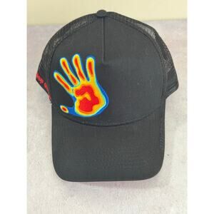 Emrzz Thermal Black Trucker Hat Hand Print Rainbow Snapback