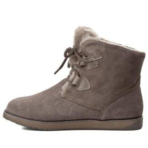 Emu Ankle Boot Featherwood Suede Leather Mini Shearling Mushroom Gray Taupe Style #W10961 Size 8