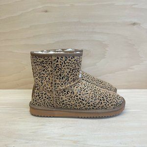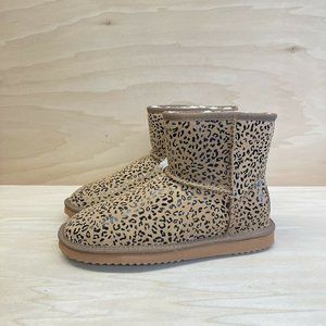 Emu Ridge Womens Sophie Mini Chestnut Leopard Print Ankle Boots Suede Size 9 NEW