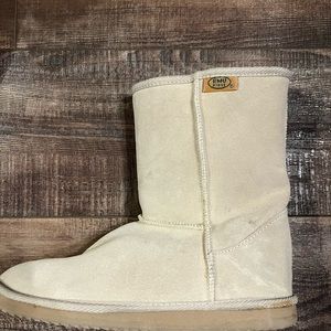 Emu Ridge tan fuzzy boots. Worn but still in great shape. One small mark on side, shown in picture.