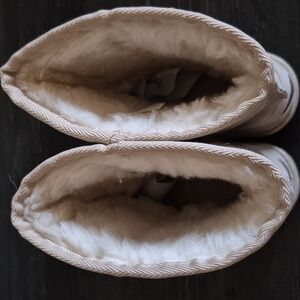 Cozy and stylish tan suede boots perfect for any casual outing. Enjoy comfort and warmth with a plush interior.