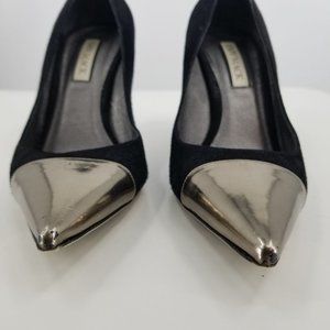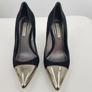 Emy Mack Black Suede and Metallic Pointed Toe Heels Size 9