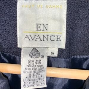 En Avance 100% wool navy blue jacket with satin collar women's size 16