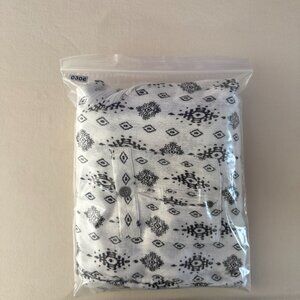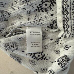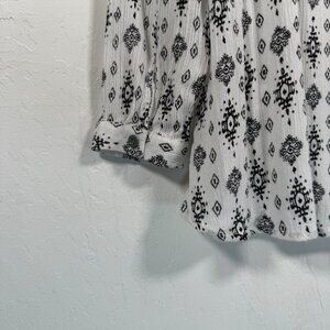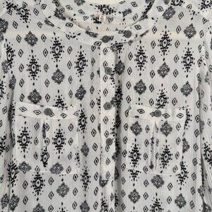 En Cream Black White Aztec Print Button Front Henley Hi-Low Hem Tunic Top Size M