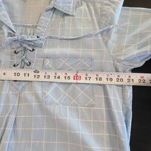 En Creme Denim Lace Up Front Tunic Mini Dress Boho Hippie Festival Medium
