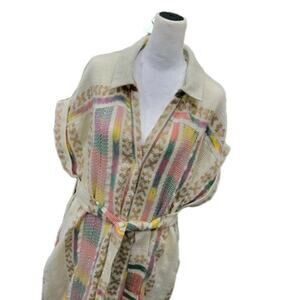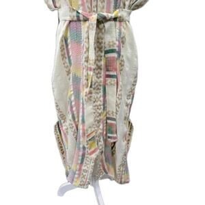 En Creme Embroidered Cross-Stitch Shirt Dress Kimono Women's Large Boho