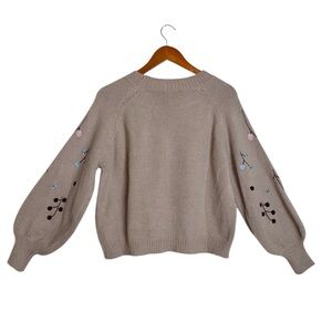 Keep warm & cozy in this chic & timeless En Creme Multicolor Floral Embroidered Balloon Sleeve Knit Sweater Jumper in solid, neutral taupe brown with contrasting dark brown, baby blue, pink, burgundy & yellow floral embroidery details. Crafted with a soft & lightweight 48% acrylic, 32% nylon & 20% polyester fabric blend. In excellent preowned condition, no stains or tears.