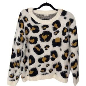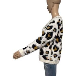 En Creme Fuzzy Long Sleeve Leopard Print Sweater (M/L)