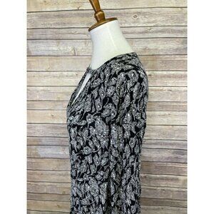 En Creme Medium Blouse Keyhole Black White Tunic Top Floral Boho