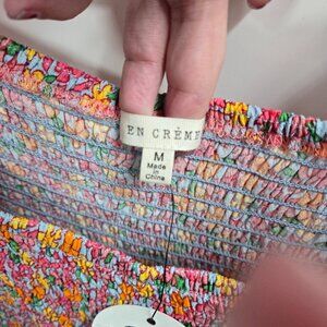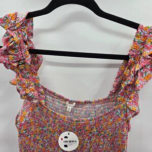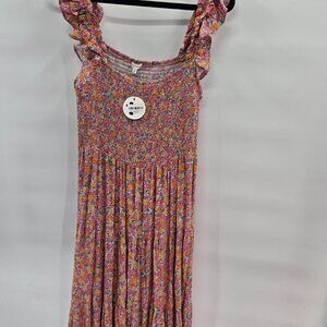 En Creme Multicolor Flora Smockedl Ruffle Sleeve Maxi Medium Dress