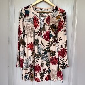 En Creme Stitch Fix Women's Pink Floral 3/4 Sleeve Tunic Blouse Medium