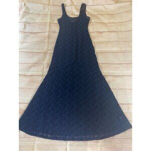 En Creme Women's Blue Sheer Lace Unlined Bohemian Maxi Dress - Medium