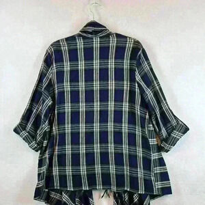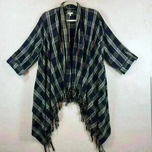 En Crème Flannel Cardigan Women’s Large Asymmetrical with Fringe