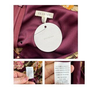 En Crème Floral Maxi Dress Boho Cutout Halter Long Sleeve Burgundy Yellow NWT M