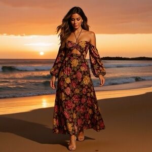 Perfect for weddings, date nights, fall festivals, or vacation evenings — this floral boho statement piece transitions beautifully from day to night.