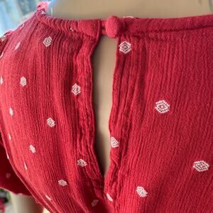 En Crème, Red/White Polka Dot Bohemian Ruched Waist Mini Dress, Women’s Medium