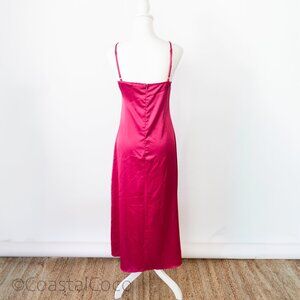 Styles: slip, satin, midi, pink, fuchsia, cocktail, wedding, bridesmaid, party, evening, formal, summer, silky, Y2K