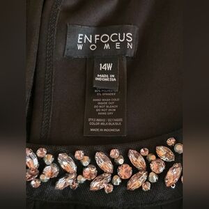 En Focus Black Beaded Neck Chiffon Cocktail Dress 14W Plus Size Formal