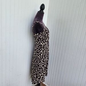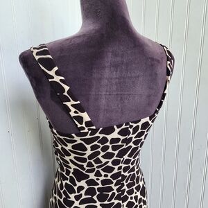 En Focus Giraffe Print Midi Dress Brown Cream Pullover Beaded Boho Chic Sz 6