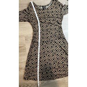 • Tags: En Focus Studio dress, Black tan pattern, Midi dress, Slinky fabric dress, Stretchy dress, Size 12 dress, Women's midi dress, Comfortable dress, Versatile wardrobe piece, Patterned dress, Fashionable dress, Day to night dress, Dress for any occasion