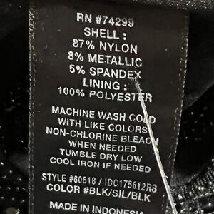 Shell Material: 87% Nylon, 8% Metallic, 5% Spandex