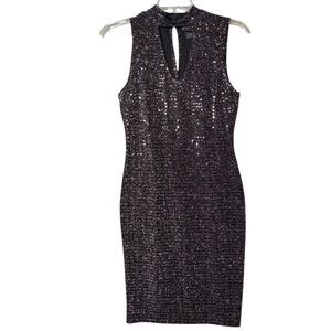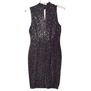 En Focus Studio Dress Womens 10 Black Silver Sequin Mock Neck Keyhole Cocktail