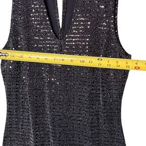 Item: Womens sleeveless cocktail dress with sequin/metallic finish