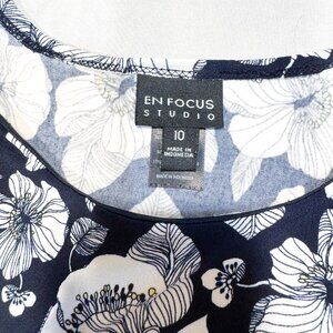 En Focus Studio Drop Waist Flowy Midi Floral Dress White Navy Women's Size 10