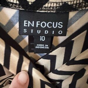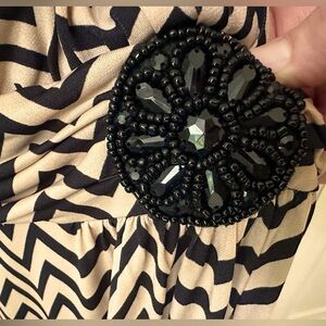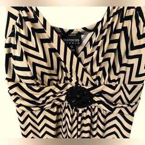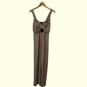 Make a statement with this chic En Focus Studio maxi dress featuring a bold black and tan zig-zag design. This stylish dress offers a flattering silhouette with a comfortable fit, perfect for casual outings, work, or evening events.