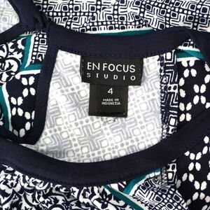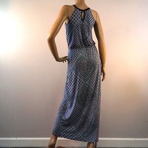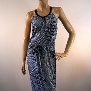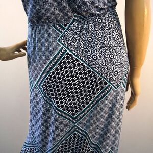 En Focus Studio Maxi Dress Womens Size 4 Sleeveless Green And Black Geo Print