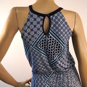 Sleeveless . Elastic Stretch Waist. Key Hole Neckline Front And Back.