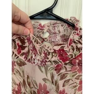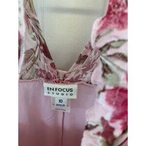 En Focus Studio Pink Floral Tiered Dress Ruffle Mock Neck Long Sleeve Size 10