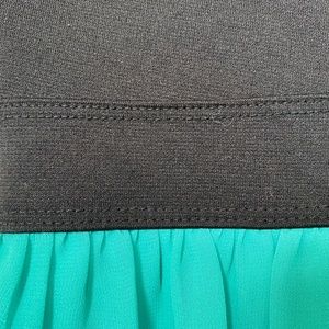 Features: Teal / Black color, lace detail on bottom, chiffon material, Sleeveless, Kinda stretchy, keyhole back, zipper on side