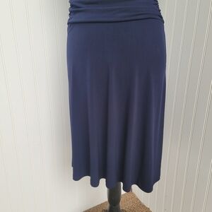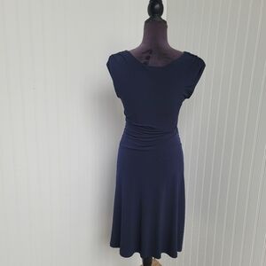 En Focus Studio Womens Stretch Dress Sz 6 Navy Blue Stretch Round Neck Ruched
