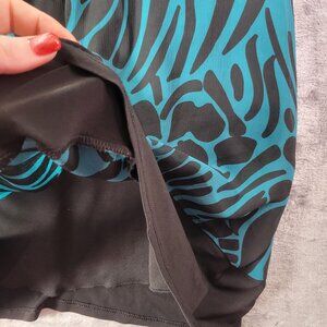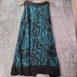 En Focus Women Teal Black Sleeveless Shift Dress 14W Plus Size Abstract Floral