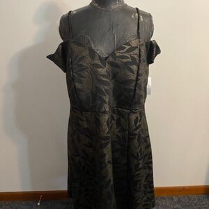 En Focus Gold Leaf Patterned Cocktail dress, size 16W