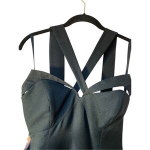En Francais by Huey Walters black strappy, front slit gown, beautiful, feminine sexy cocktail, formal fully lined wedding pit to pit 17 inches waist 30 inches length 54 inches