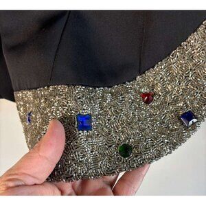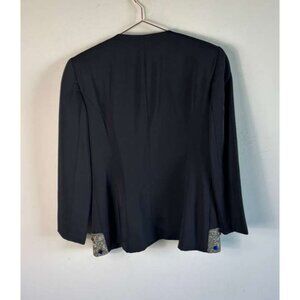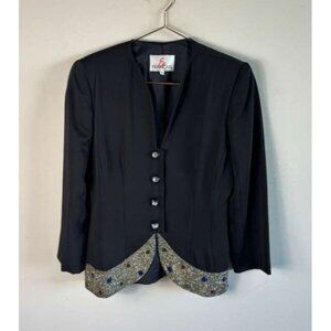 En Francais by Huey Waltzer Vintage Beaded Black Blazer Jacket Curved Hem Size 8