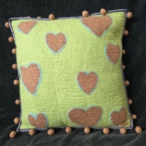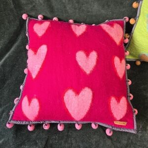 Add a touch of charm to your home with these heart-patterned throw pillows. Featuring vibrant pink and green colors, these pillows are perfect for any living space.