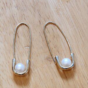 Selling a pair of safety pin earrings from En Route Jewelry in gold and pearl. Minimal wear. I'm happy to answer any questions about the item!