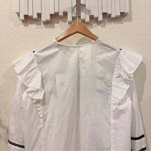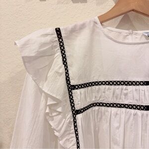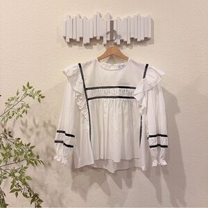 En Saison Aliza Long Sleeve Ruffle Blouse Top in White Size Small NWT