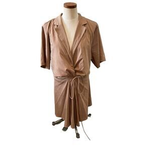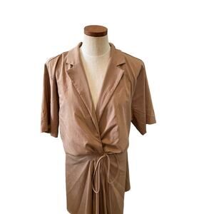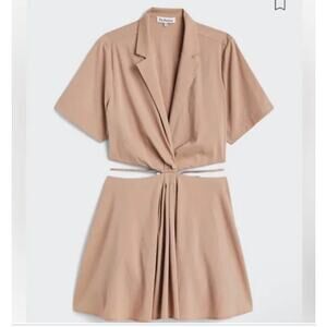 New En Saison Beverly Cut Out Mini Dress in tan, Plus Size 2X. Bare a little skin in this peekaboo dress from En Saison. Nylon Rayon spandex blend, lined, side zipper at top, collar and v neck