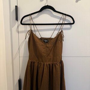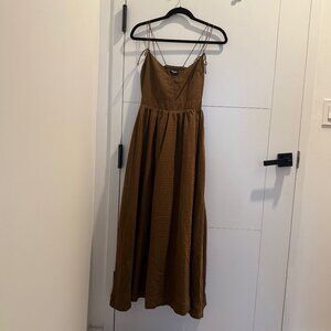 Designed with a slim-fitting bodice and a flowy skirt. Smocked elastic at the back adds some give. Jacquard fabric has a lightweight feel and soft hand.