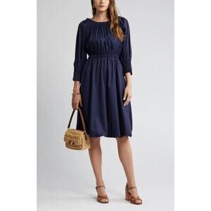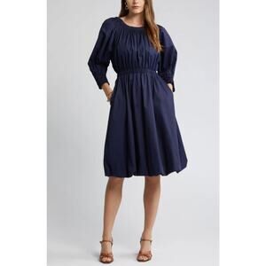 En Saison Brigitta Puff Sleeve A-Line Dress Navy W/Tag - M
