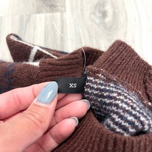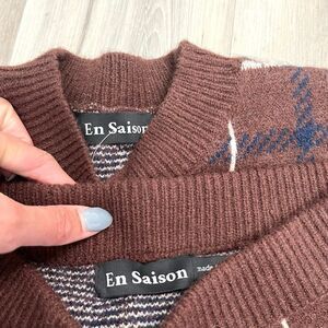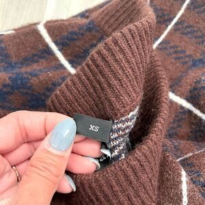Excellent used Condition Women’s En Saison Brown and Navy Blue Plaid Knit Long Sleeve Sweater and Mini Skirt Set in Size XS