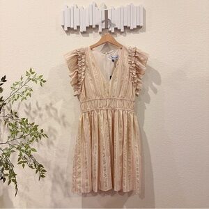 En Saison Brubeck Ruffle Mini Dress in Peach Taupe Size Small NWT
