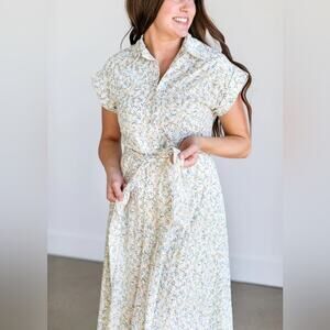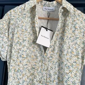NWT EN SAISON Carolina Midi Dress In Teal Multi - Green All over floral print with eyelet embroidery. Covered button front. Collar and cuffed short sleeves. Midi length with fit and flare style and tie waist. Size medium. Versatile Summer and spring dress in chic French flare. Questions? Leave a comment below!