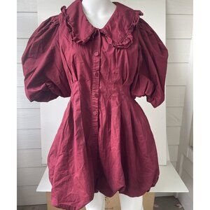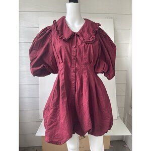 En Saison Cosima Cotton Poplin Mini Dress Burgundy Puff Sleeve Size M Bubble Hem