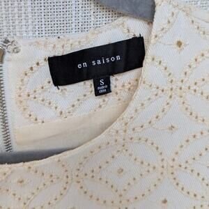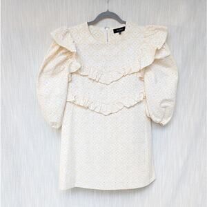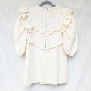 En Saison Cream Denim Embroidered Ruffle Short Dress, size S