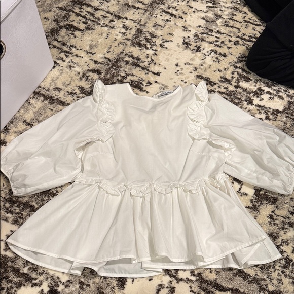 Elegant cream blouse with charming ruffles. Perfect for stylish outings.